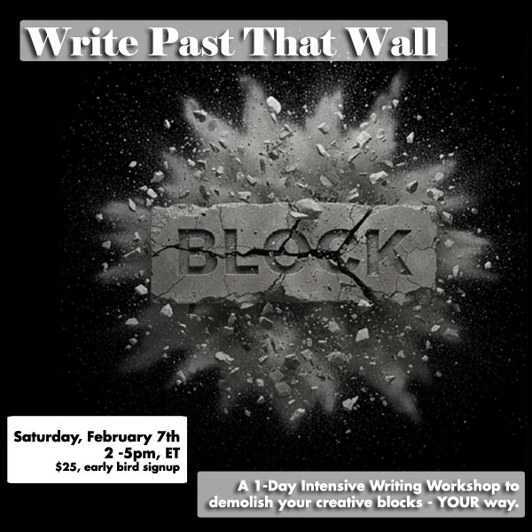 A 3-HOUR INTENSIVE WRITER’S WORKSHOP designed to demolish your creative blocks – your way.