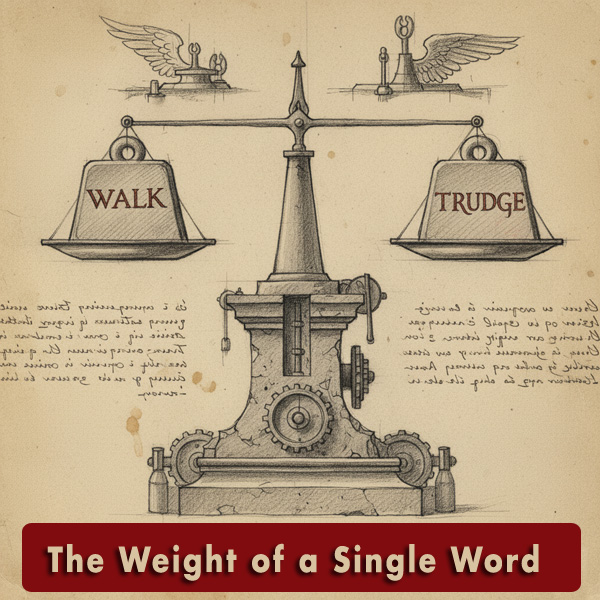Same structure. Same character. Same setting. But one word—slunk instead of walked—transforms everything. Suddenly we know this detective is ashamed, furtive, or trying not to be noticed. We know something about the power dynamics in that room before another word is written.
